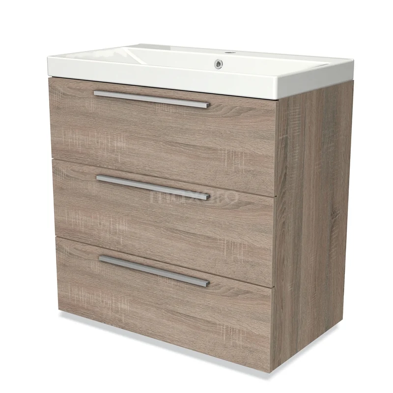 Modulo Bathroom furniture with sink | 80 cm Oak Flat front Ceramic 3 drawers