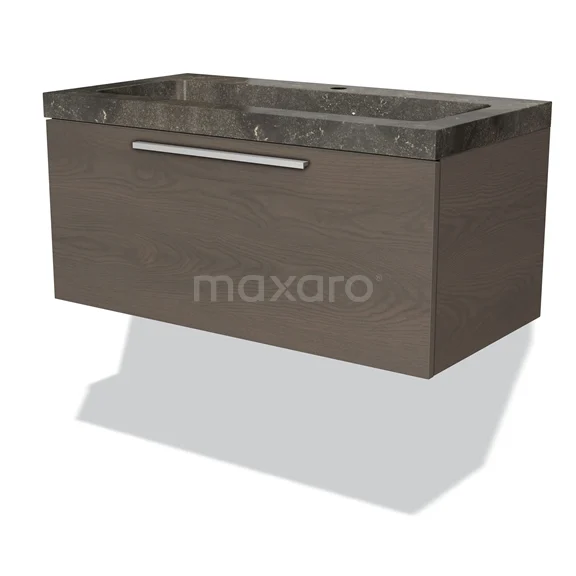 Modulo Vanity units with basin | 90 cm Dark brown oak Flat front Natural stone 1 drawer
