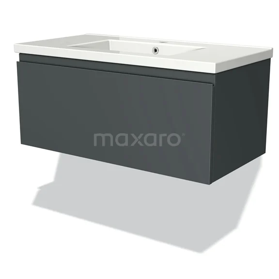 Modulo Vanity units with basin | 90 cm Dark grey Handle-less front Ceramic 1 drawer