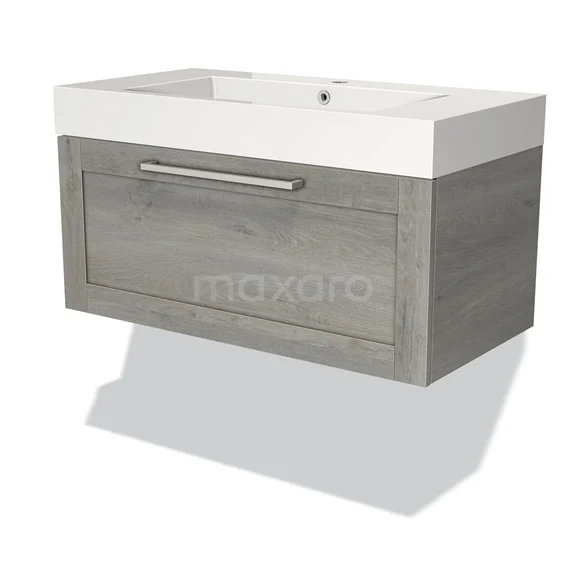 Modulo Vanity units with basin | 90 cm Grey oak Frame front Mineral marble 1 drawer
