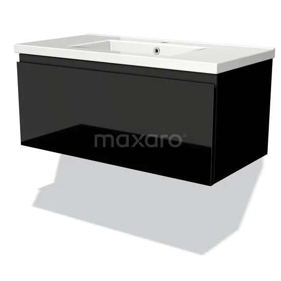 Modulo Vanity units with basin | 90 cm High-gloss black Handle-less front Ceramic 1 drawer