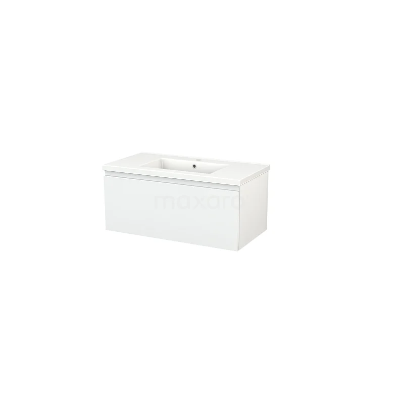 Modulo+ Vanity units with basin | 90 cm High-gloss white Handle-less front Ceramic 1 drawer