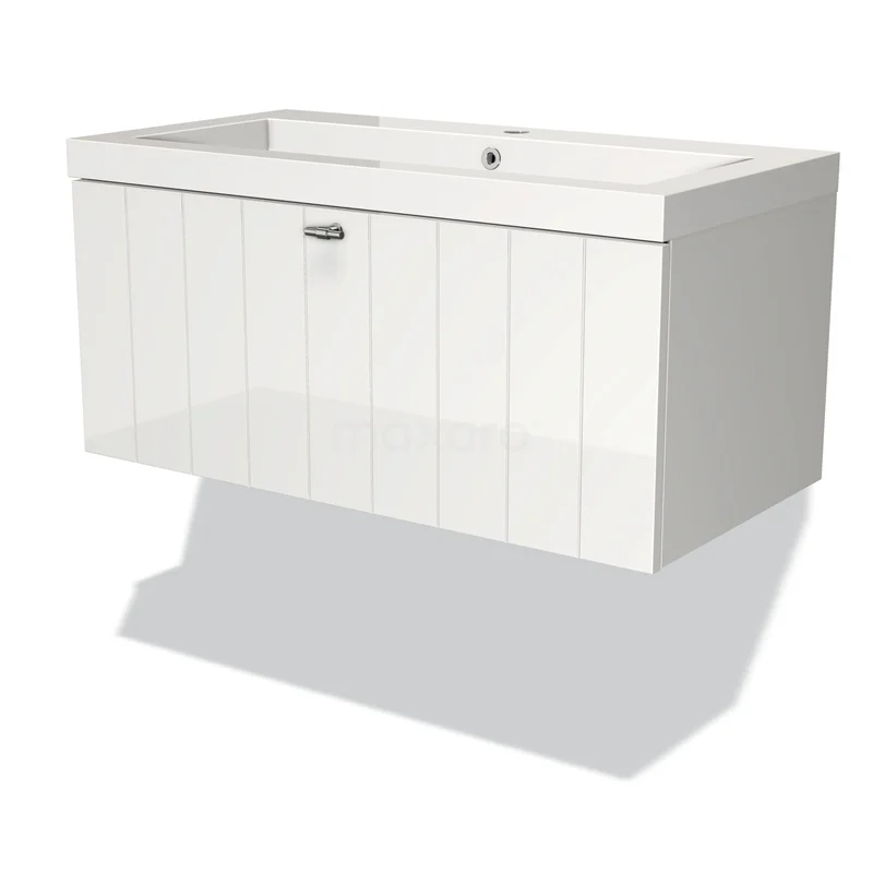 Modulo Bathroom furniture with sink | 90 cm High-gloss white Slat front Mineral marble 1 drawer