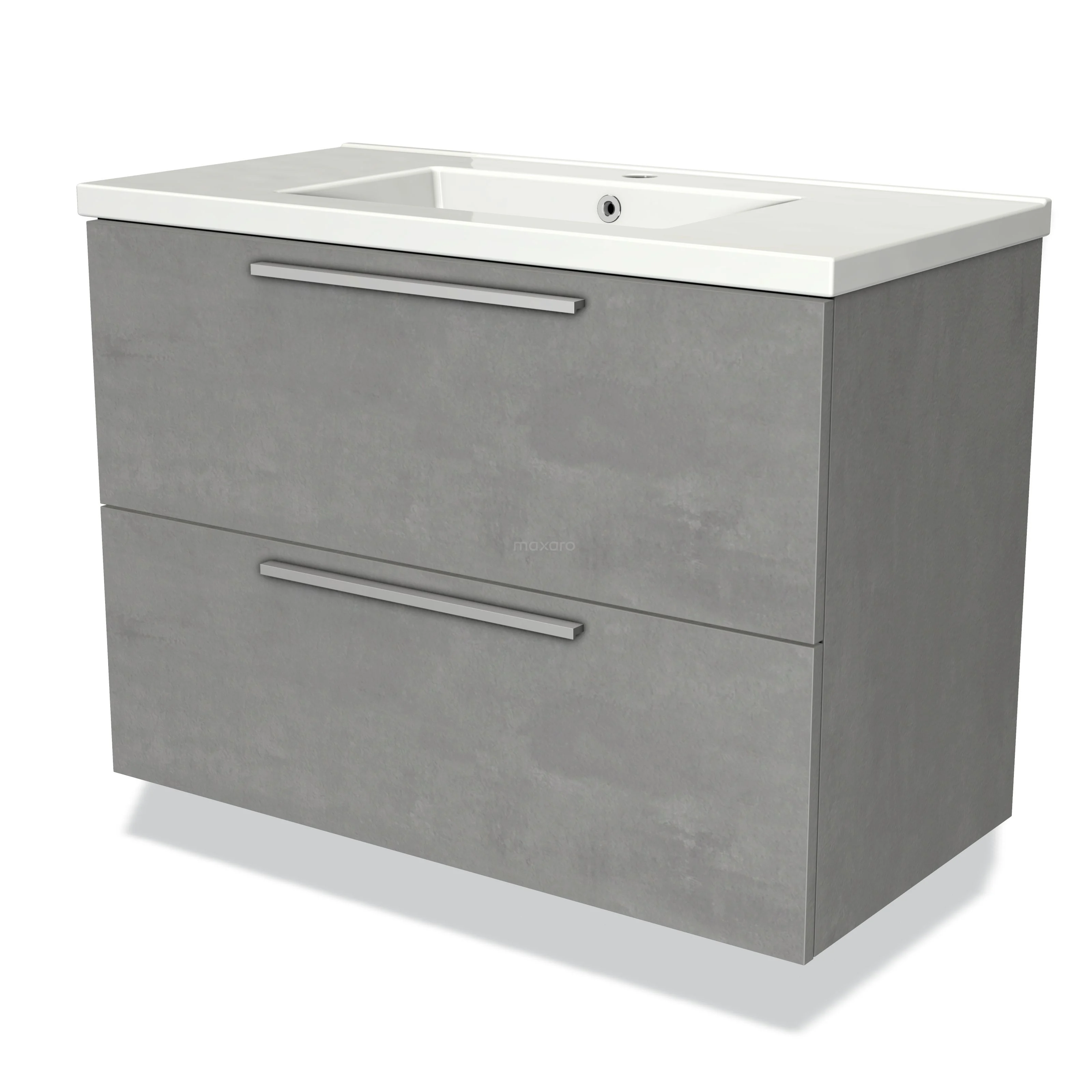 Modulo Vanity units with basin | 90 cm Light grey concrete Flat front Ceramic 2 Stacked drawers