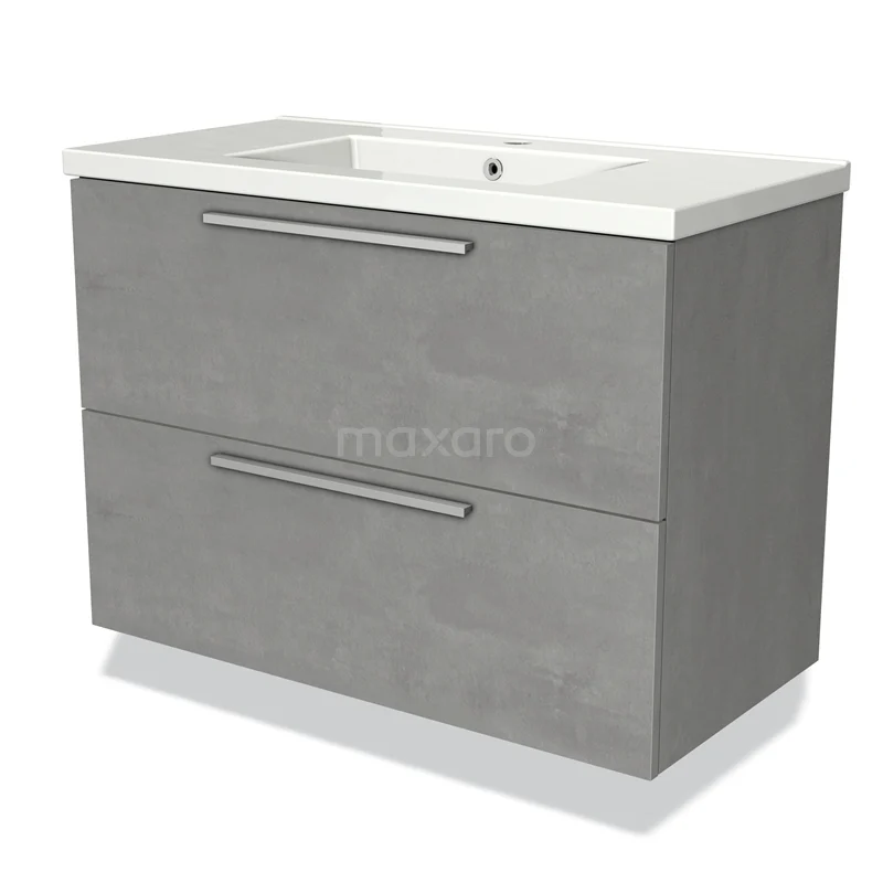 Stylish design The stylish design makes this bathroom unit the eye-catcher of your bathroom. The base cabinet has a flat front and has a finish in light grey concrete. This tough concrete look gives your bathroom interior an industrial look-and-feel. In addition, the flat front provides a timeless touch. You need to joint the handles yourself. These are available in various colours and shapes