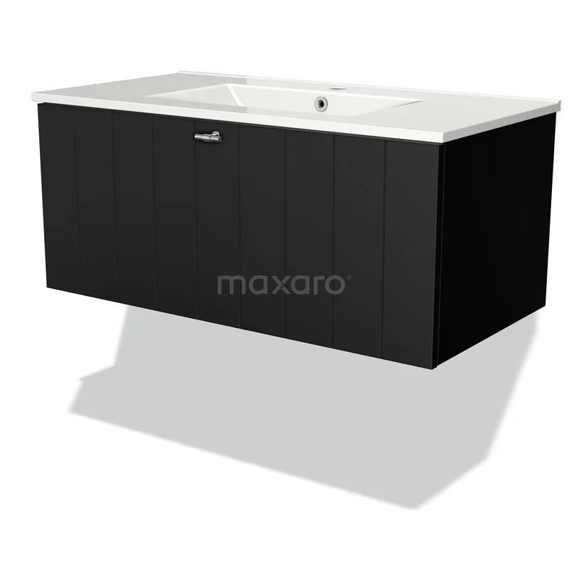 Modulo Vanity units with basin | 90 cm Matte black Slat front Ceramic 1 drawer