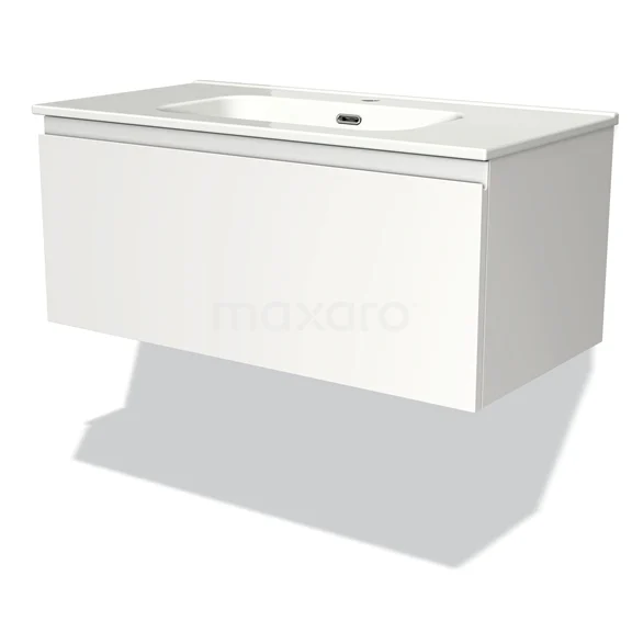 Modulo Vanity units with basin | 90 cm Matte white Handle-less front Ceramic 1 drawer