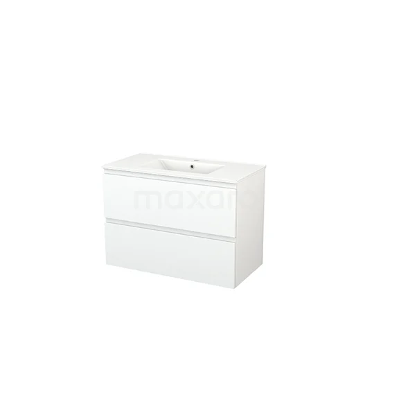 Modulo+ Vanity units with basin | 90 cm Matte white Handle-less front Ceramic 2 Stacked drawers