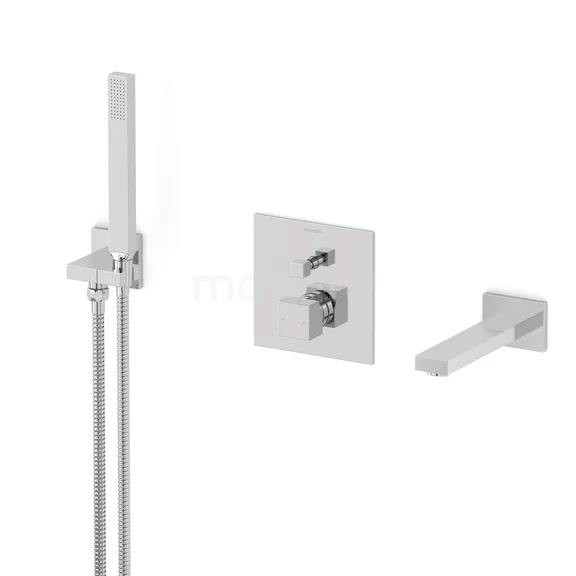 This built-in bath tap with mixer from the Cubic series must not be missing in your bathroom. This model is equipped with a hand shower and shower hose. The thermostat tap has a luxurious design and is finished in chrome. The timeless appearance of this tap fits perfectly in any bathroom style.