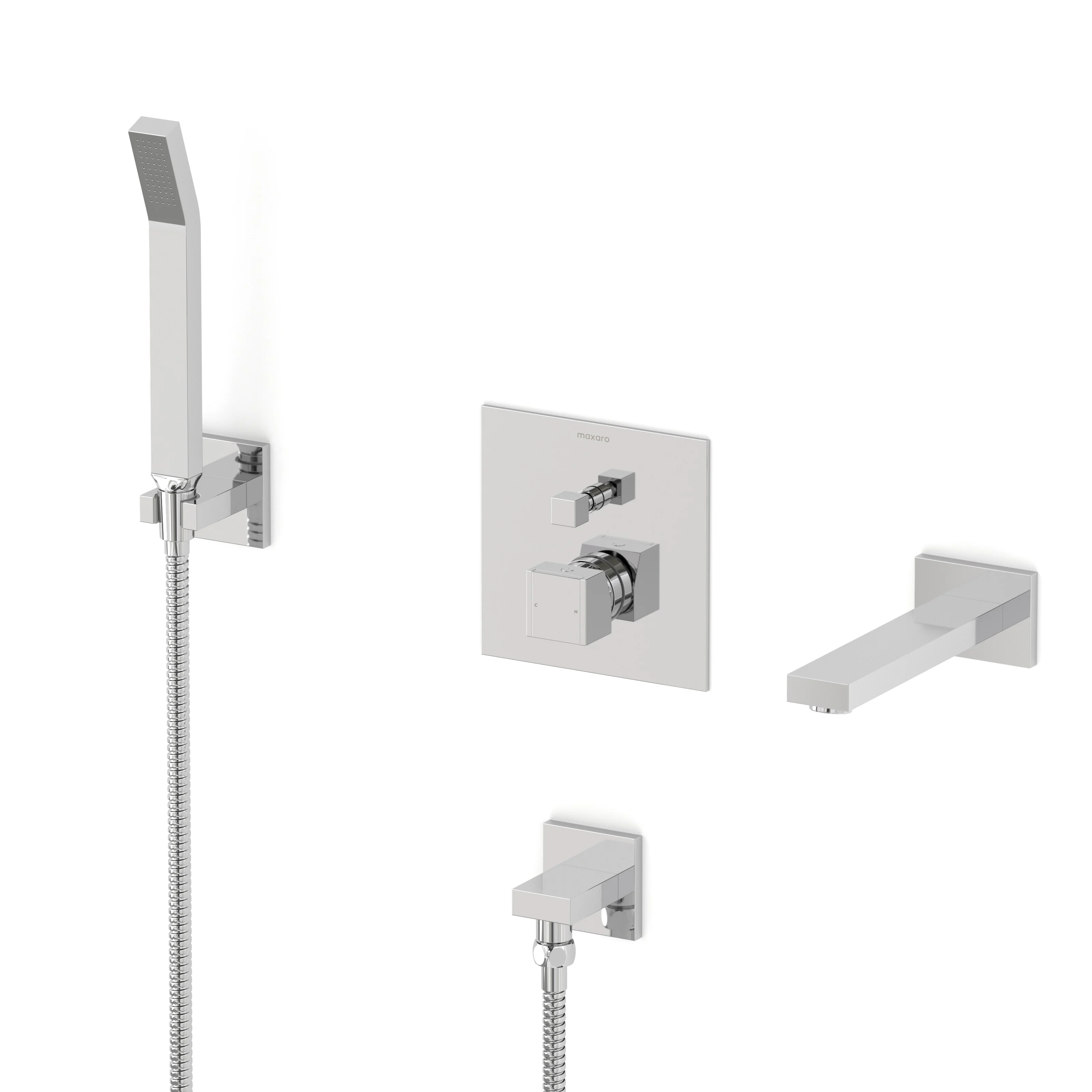 Cubic Built-in bath tap set | Chrome Single lever mixer tap with hand shower 1 setting
