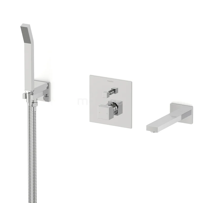 This built-in bath tap with mixer from the Cubic series is an absolute must-have in your bathroom. This model is equipped with a hand shower and shower hose. The thermostatic tap has a luxurious design and is finished in chrome. The timeless appearance of this tap fits perfectly in any bathroom style.