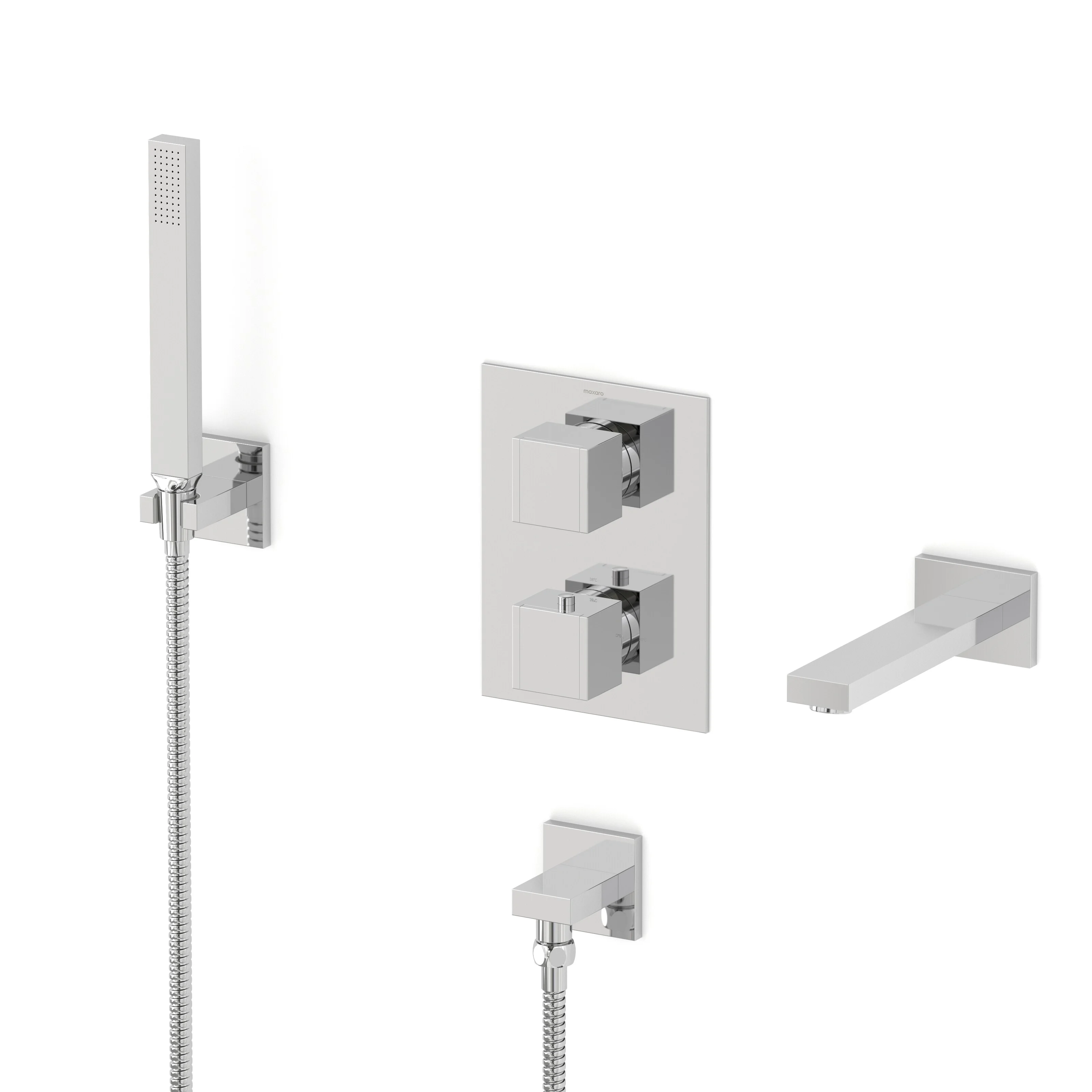 Cubic Built-in bath tap set | Chrome Thermostatic tap with hand shower 1 setting