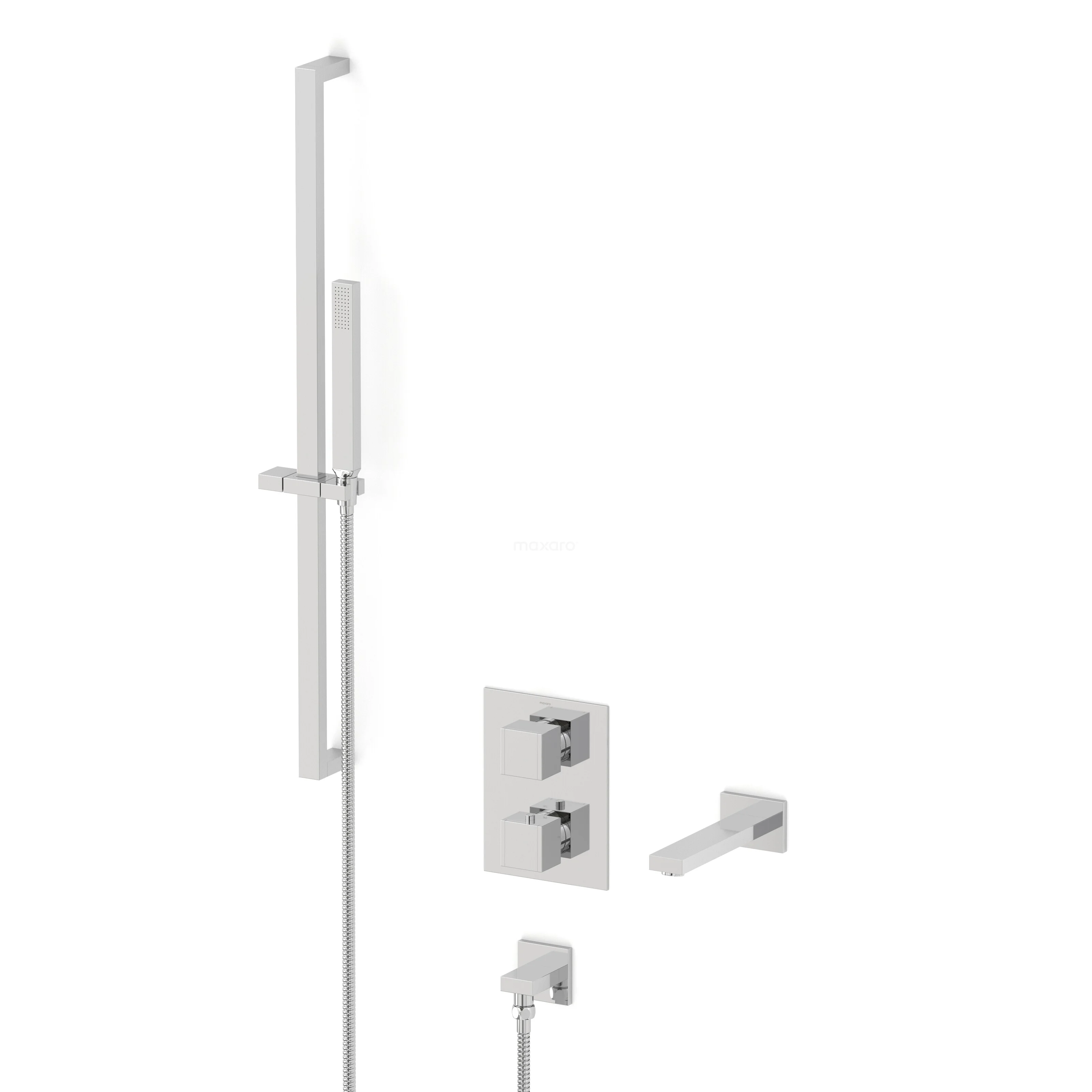 This built-in bath tap with thermostat tap from the Cubic series is an absolute must-have in your bathroom. This model is equipped with a hand shower and shower hose. The thermostat tap has a luxurious design and is finished in chrome. The timeless appearance of this tap fits perfectly in any bathroom style.