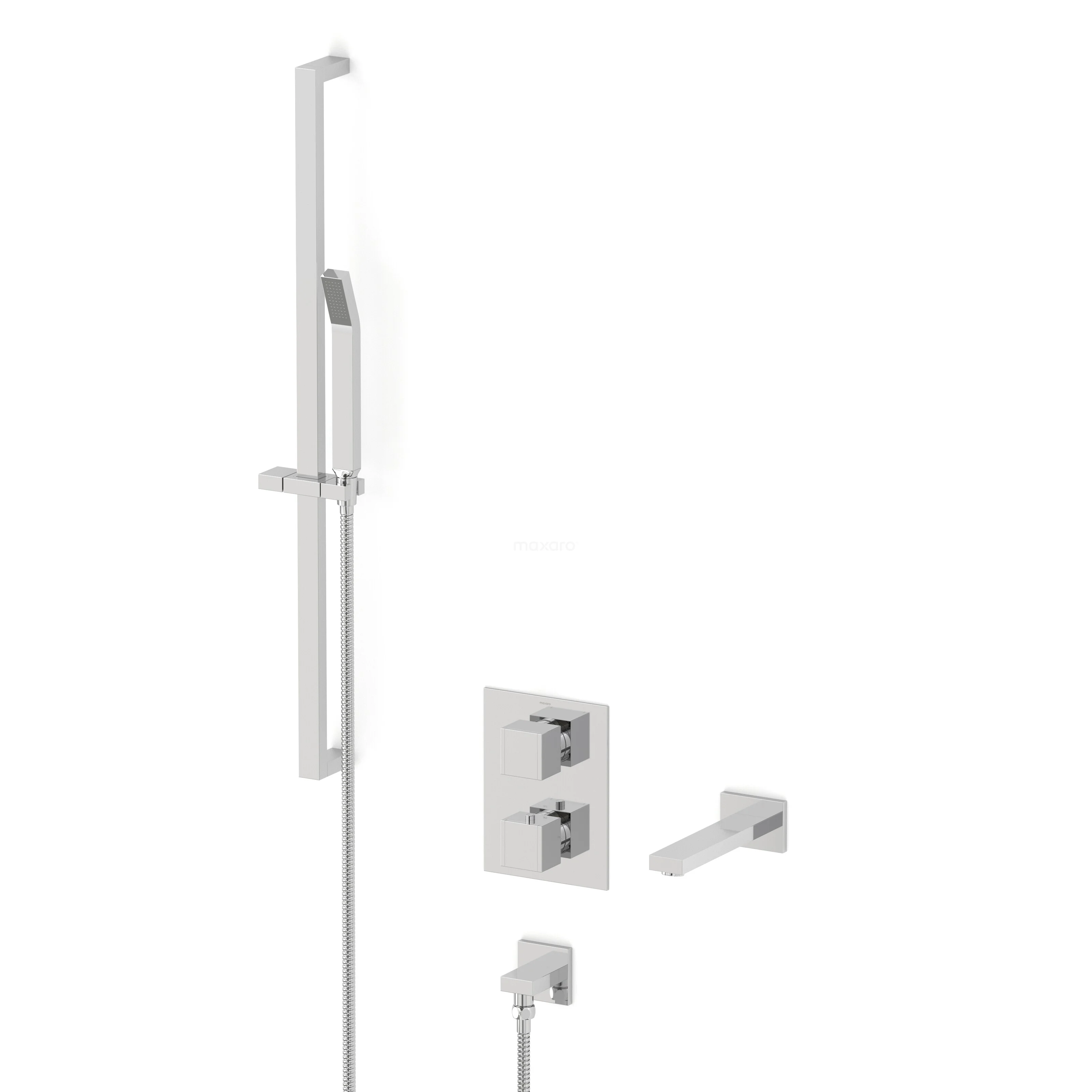 Cubic Built-in bath tap set | Chrome Thermostatic tap with handheld shower 1 setting