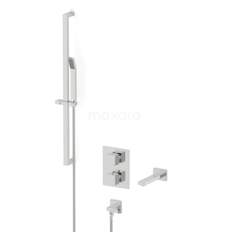 This built-in bath tap with thermostat from the Cubic series is an absolute must-have in your bathroom. This model is equipped with a hand shower and shower hose. The thermostat tap has a luxurious design and is finished in chrome. The timeless appearance of this tap suits every bathroom style.