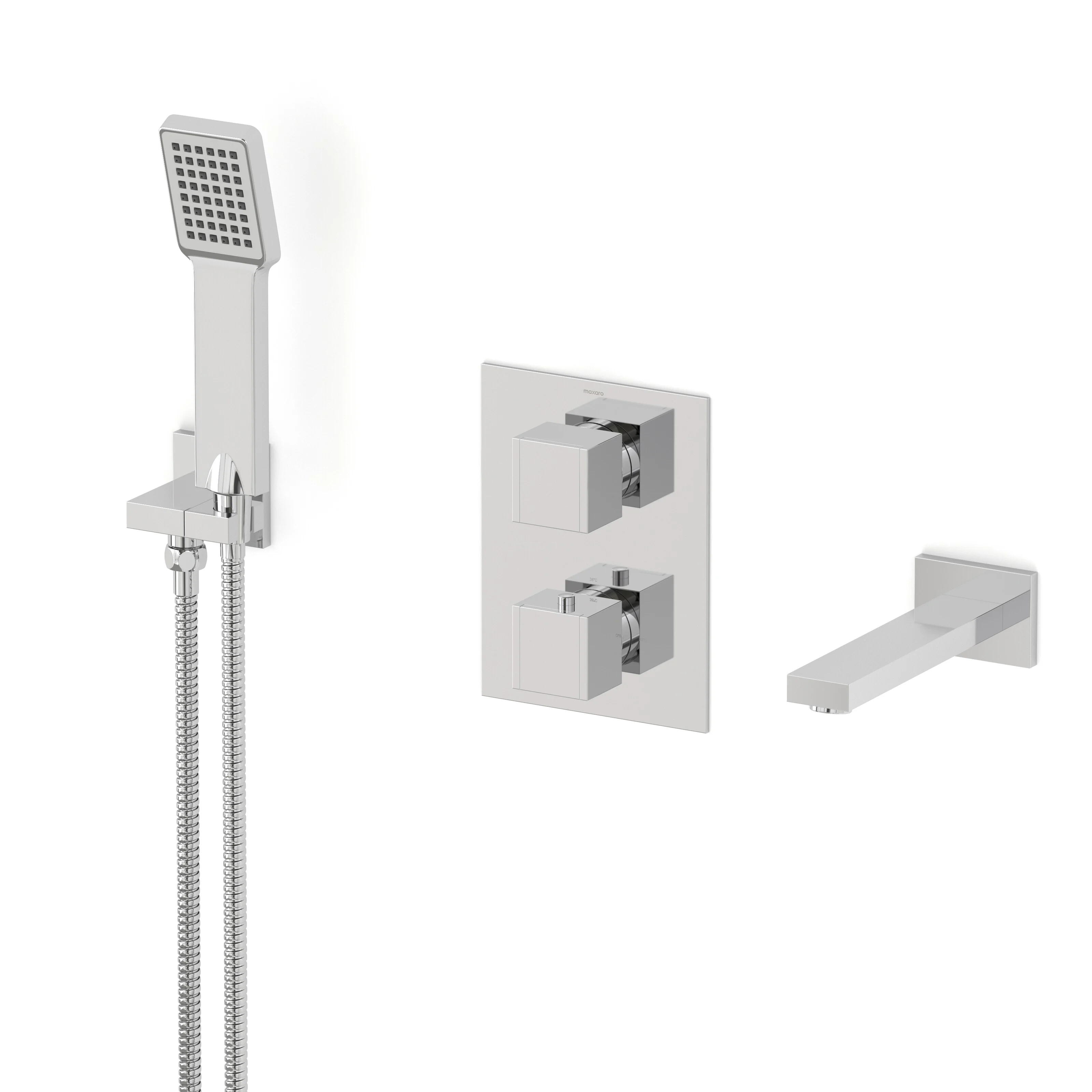 Cubic Built-in bath tap set | Chrome Thermostatic tap with handheld shower 1 setting