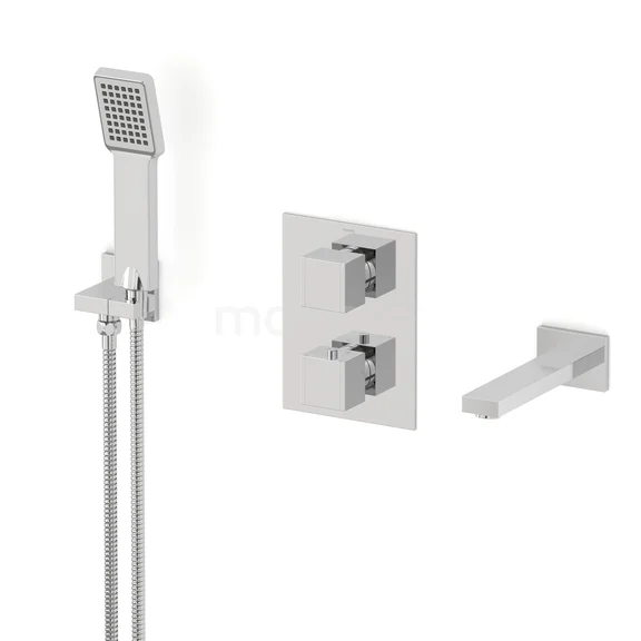 This built-in bath tap with thermostat from the Cubic series is an absolute must-have in your bathroom. This model is equipped with a hand shower and shower hose. The thermostat tap has a luxurious design and is finished in chrome. The timeless appearance of this tap suits every bathroom style.