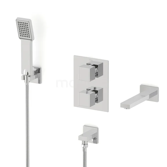This built-in bath tap with thermostat from the Cubic series is an absolute must-have in your bathroom. This model is equipped with a hand shower and shower hose. The thermostat tap has a luxurious design and is finished in chrome. The timeless appearance of this tap suits every bathroom style.