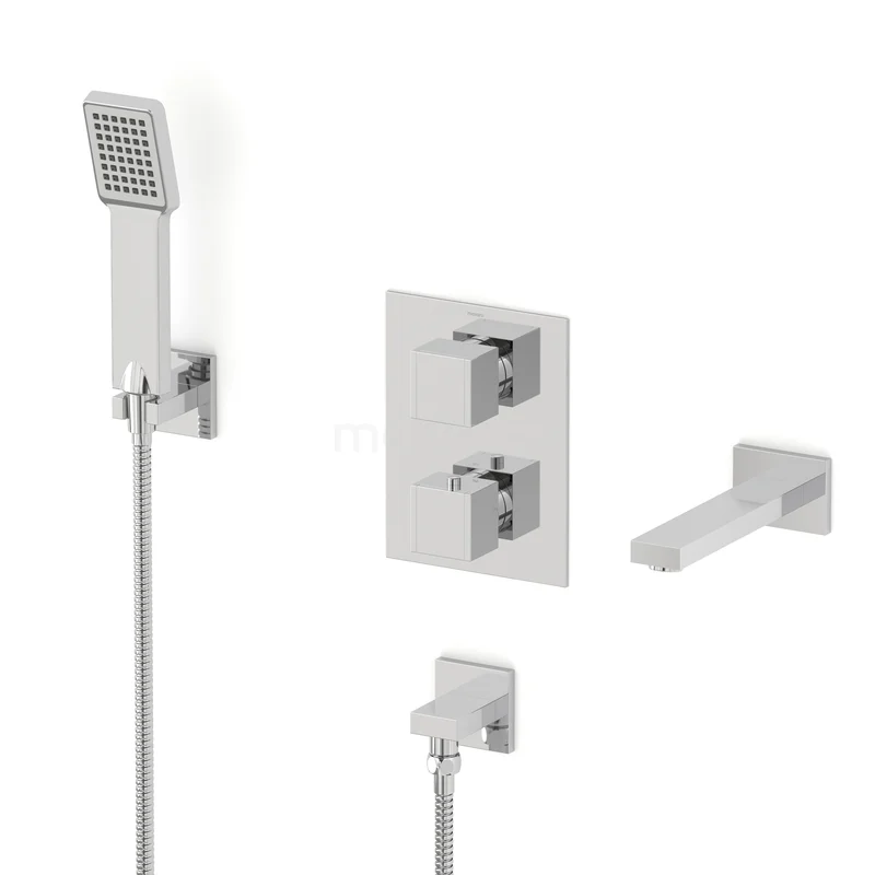 Cubic Built-in bath tap set | Chrome Thermostatic tap with handheld shower 1 setting