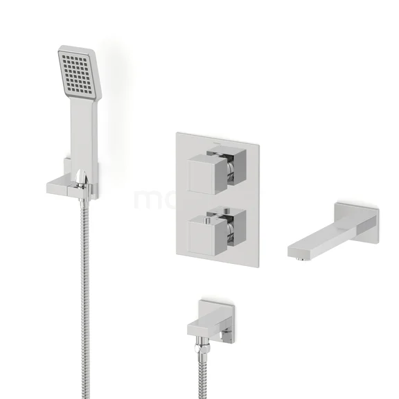 This built-in bath tap with thermostat from the Cubic series is an absolute must-have in your bathroom. This model is equipped with a hand shower and shower hose. The thermostat tap has a luxurious design and is finished in chrome. The timeless appearance of this tap suits every bathroom style.