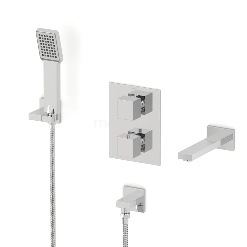 Cubic Built-in bath tap set | Chrome Thermostatic tap with handheld shower 1 setting