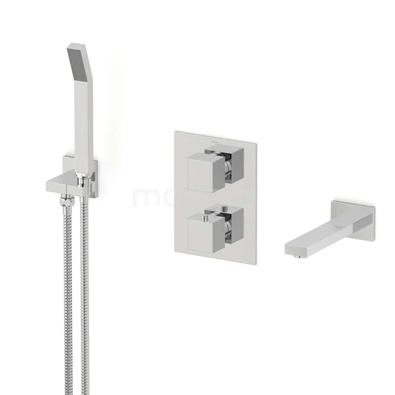This built-in bath tap with thermostat from the Cubic series is an absolute must-have in your bathroom. This model is equipped with a hand shower and shower hose. The thermostat tap has a luxurious design and is finished in chrome. The timeless appearance of this tap suits every bathroom style.