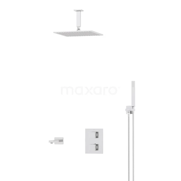 Cubic Built-in Bath Tap with Rain Shower | Chrome Thermostatic