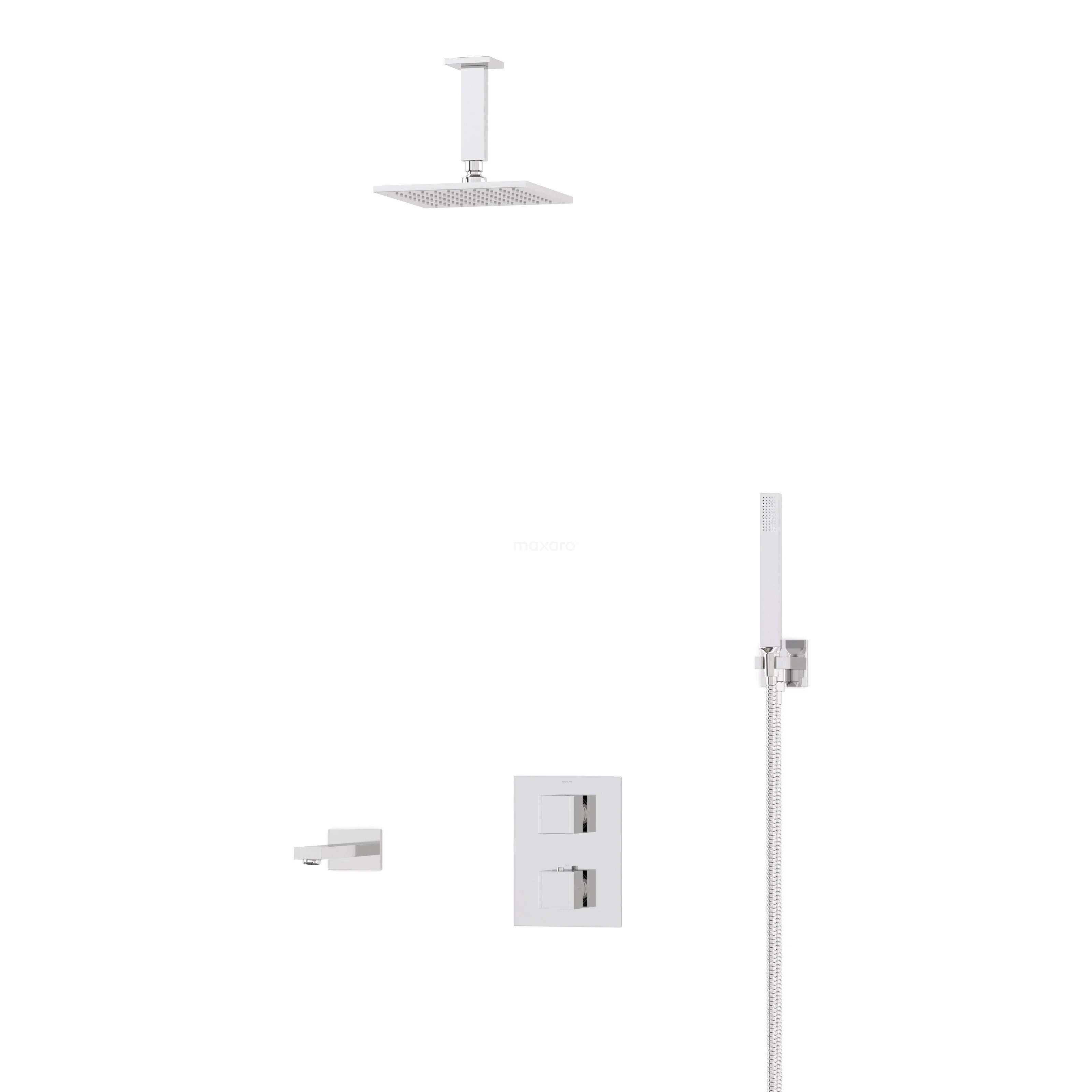 Cubic Built-in Bath Tap with Rain Shower | Chrome Thermostatic