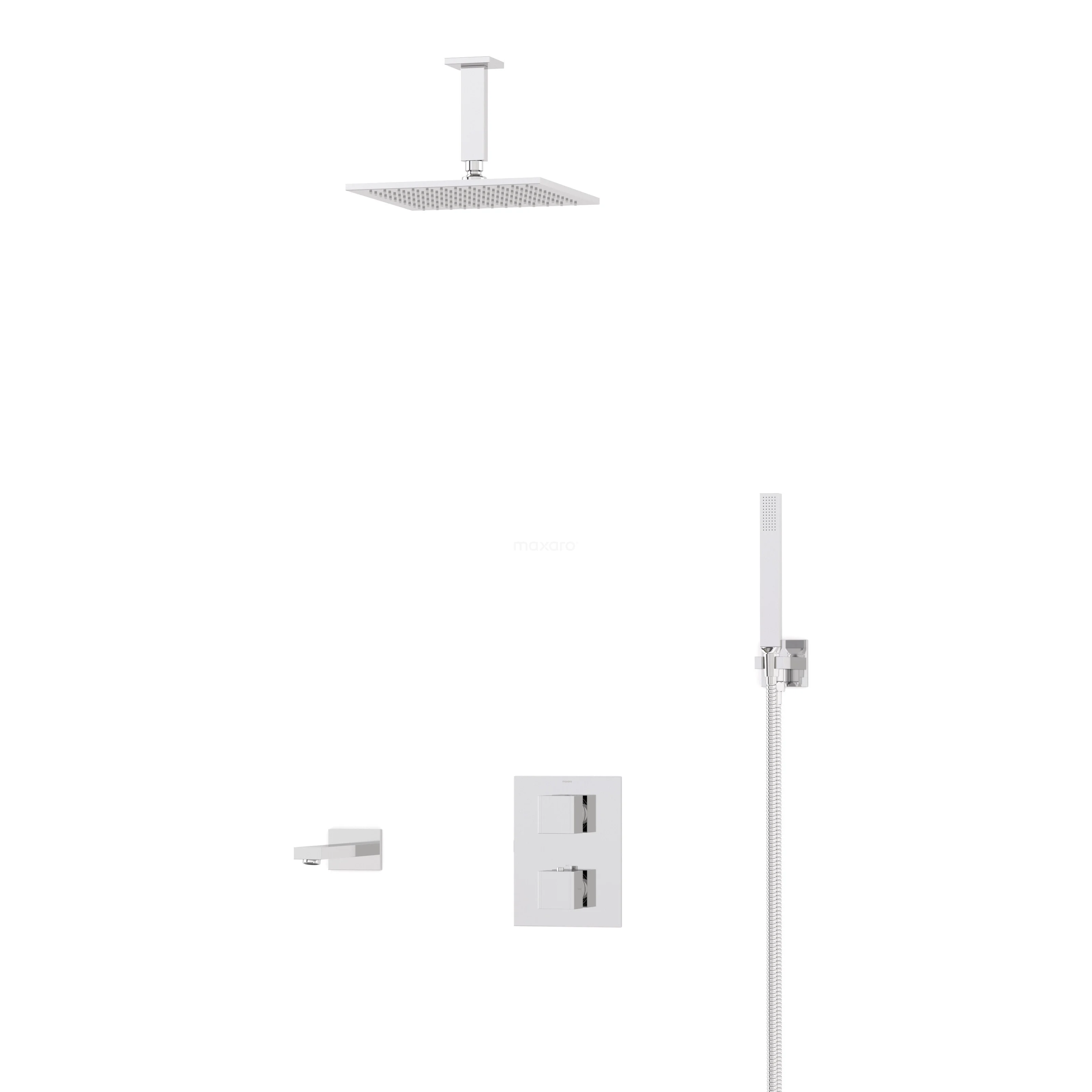Cubic Built-in Bath Tap with Rain Shower | Chrome Thermostatic