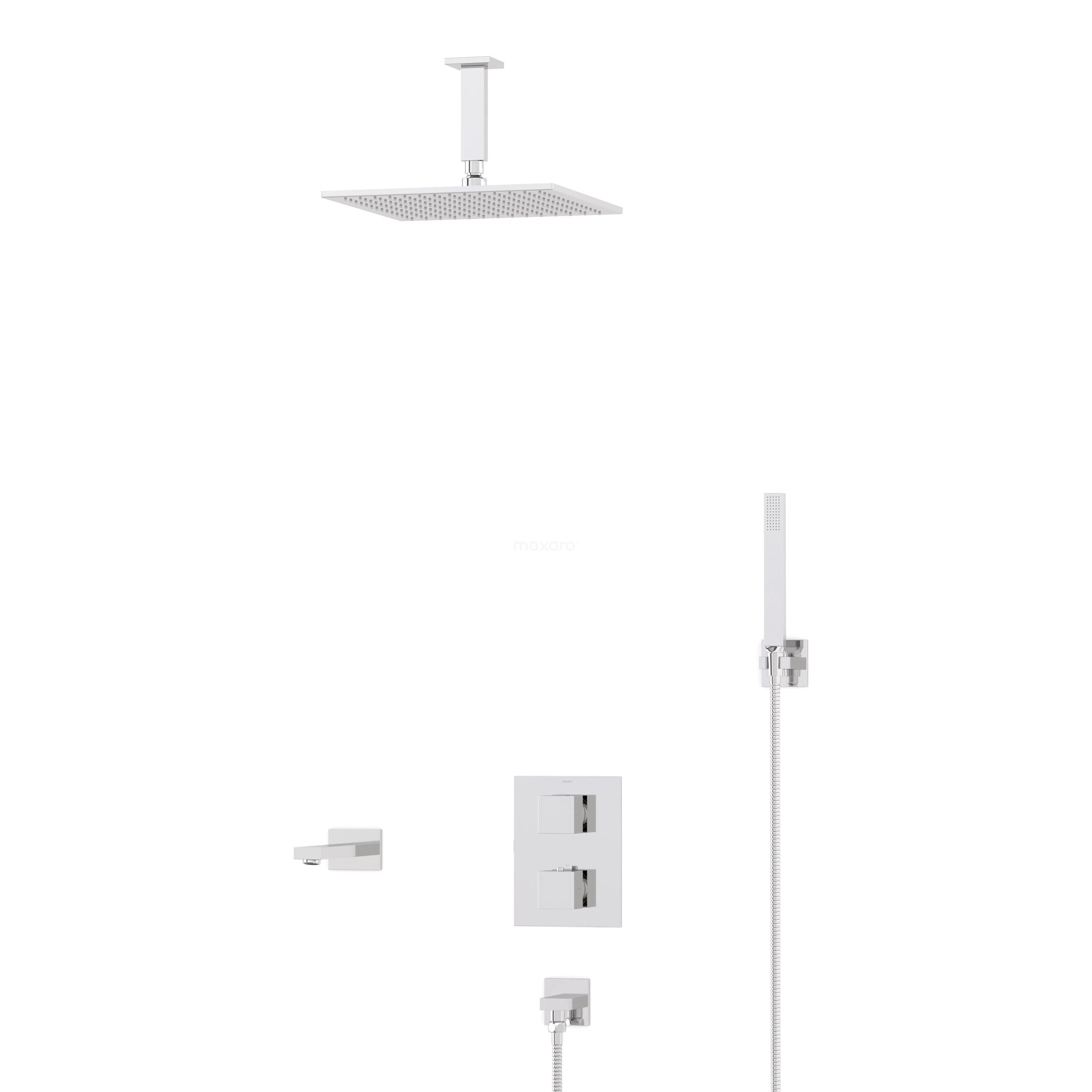 Cubic Built-in Bath Tap with Rain Shower | Chrome Thermostatic
