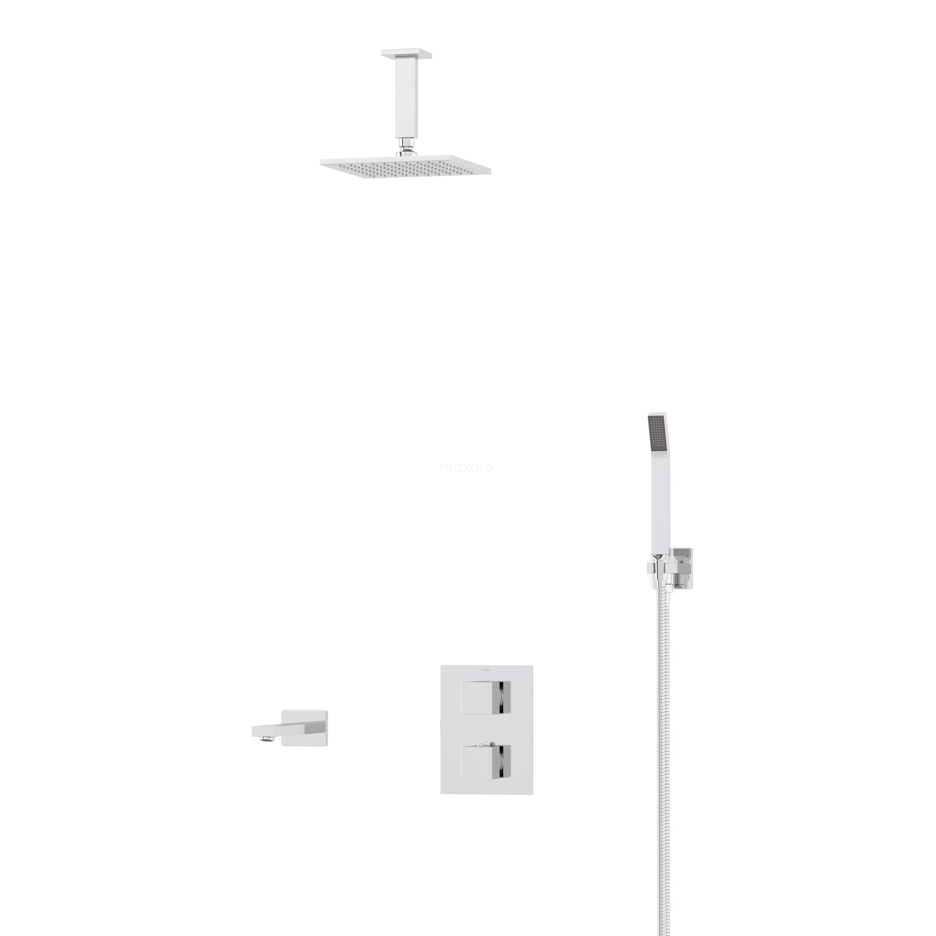 Cubic Built-in Bath Tap with Rain Shower | Chrome Thermostatic
