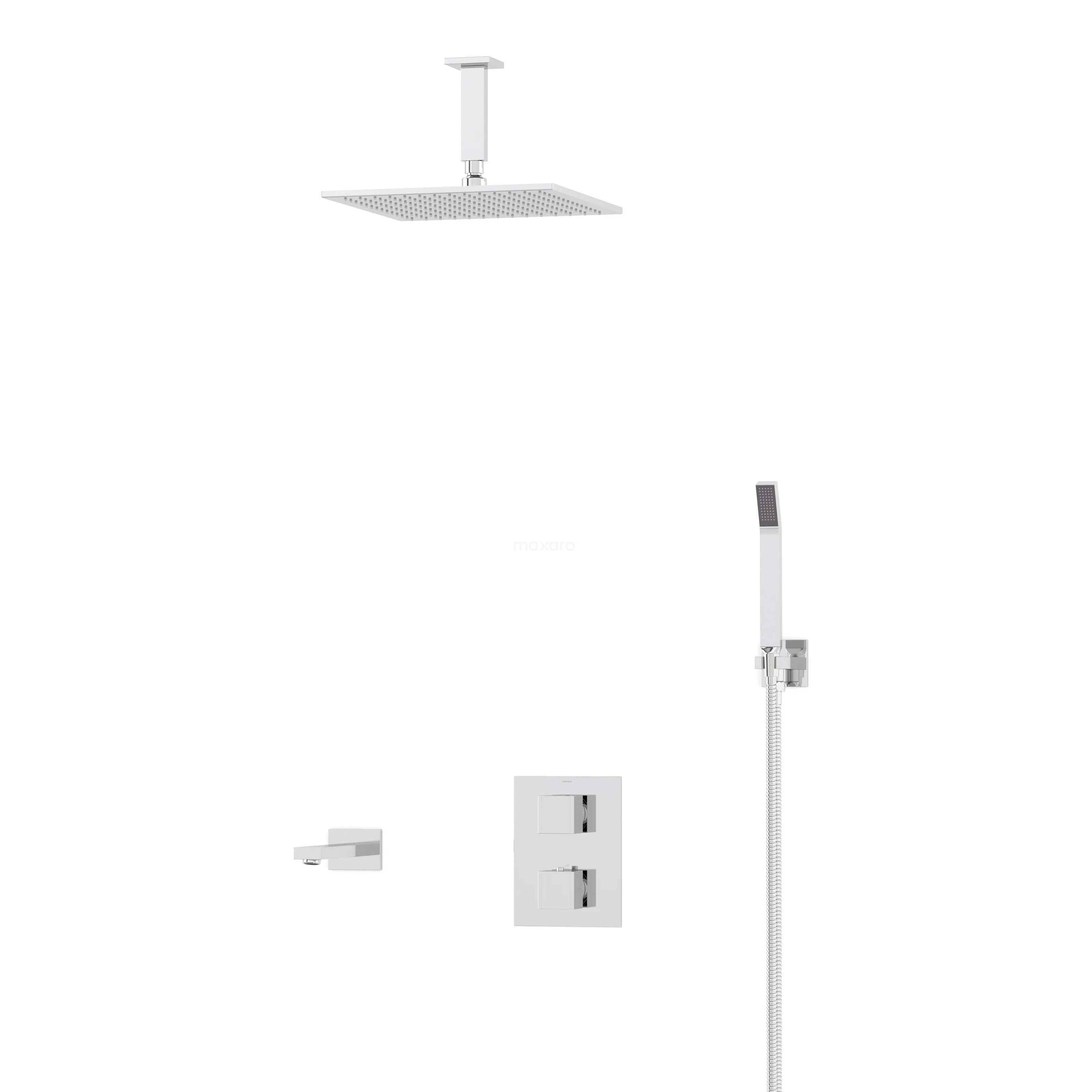 Cubic Built-in Bath Tap with Rain Shower | Chrome Thermostatic