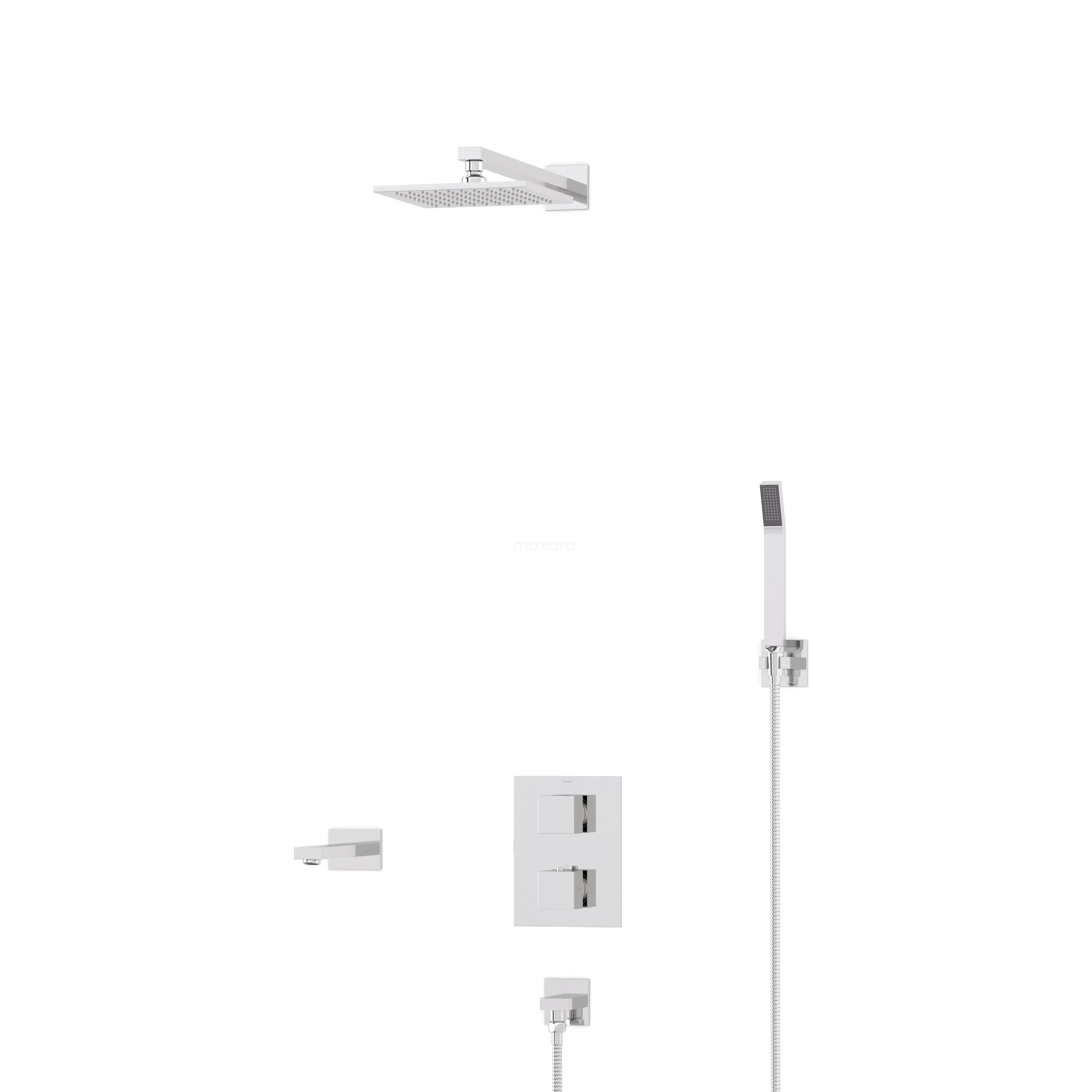 Cubic Built-in Bath Tap with Rain Shower | Chrome Thermostatic