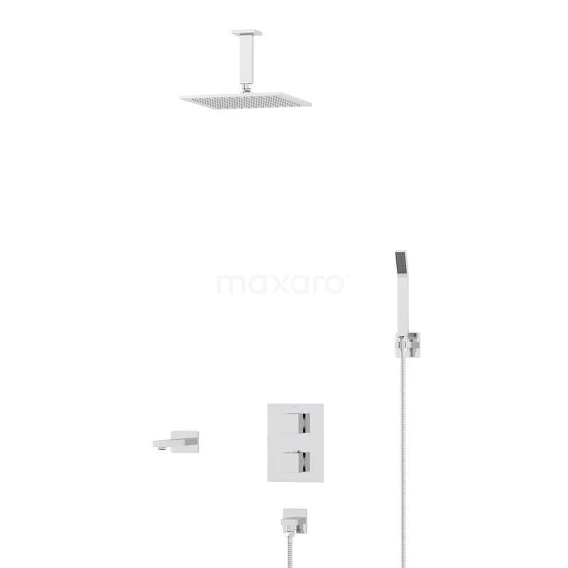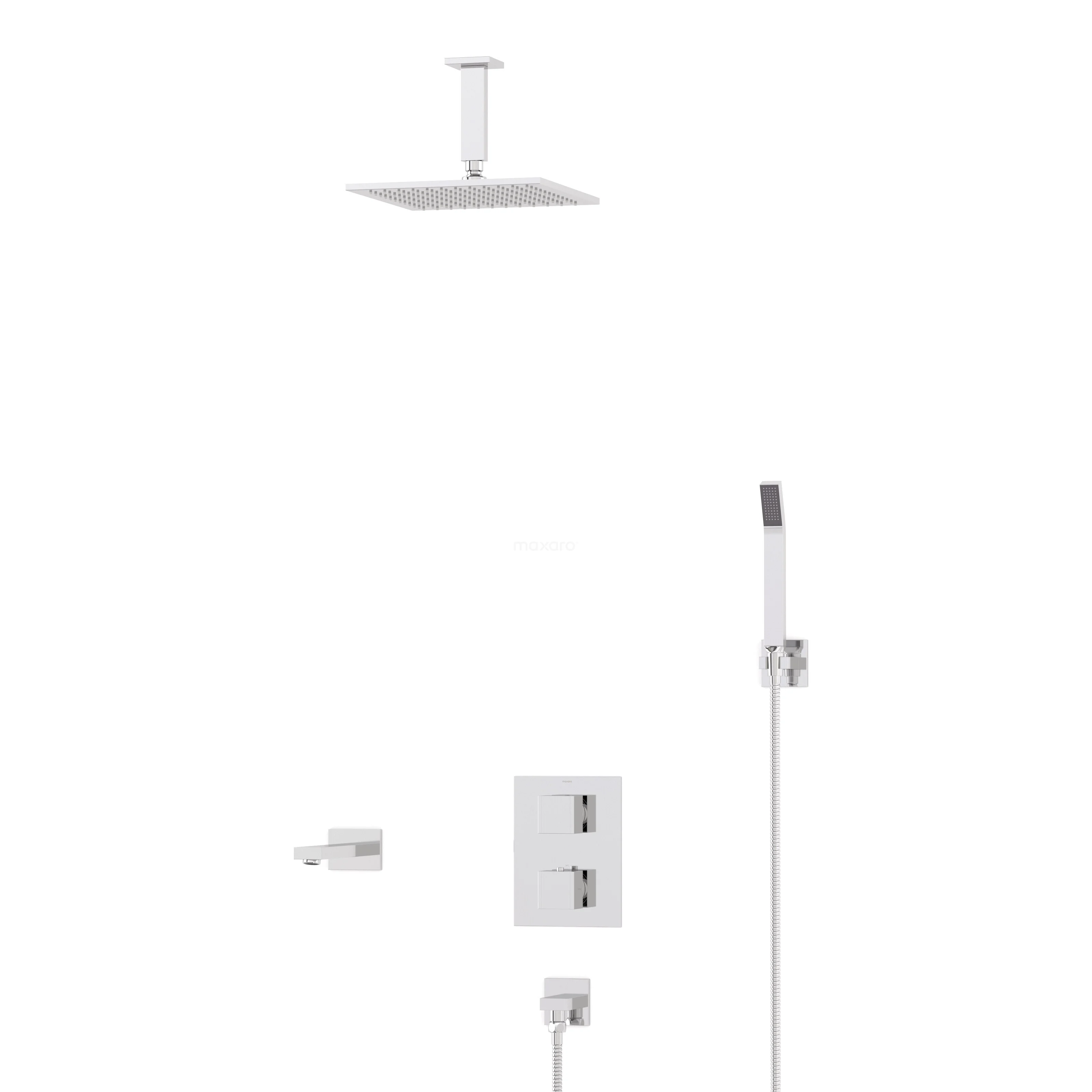 Cubic Built-in Bath Tap with Rain Shower | Chrome Thermostatic