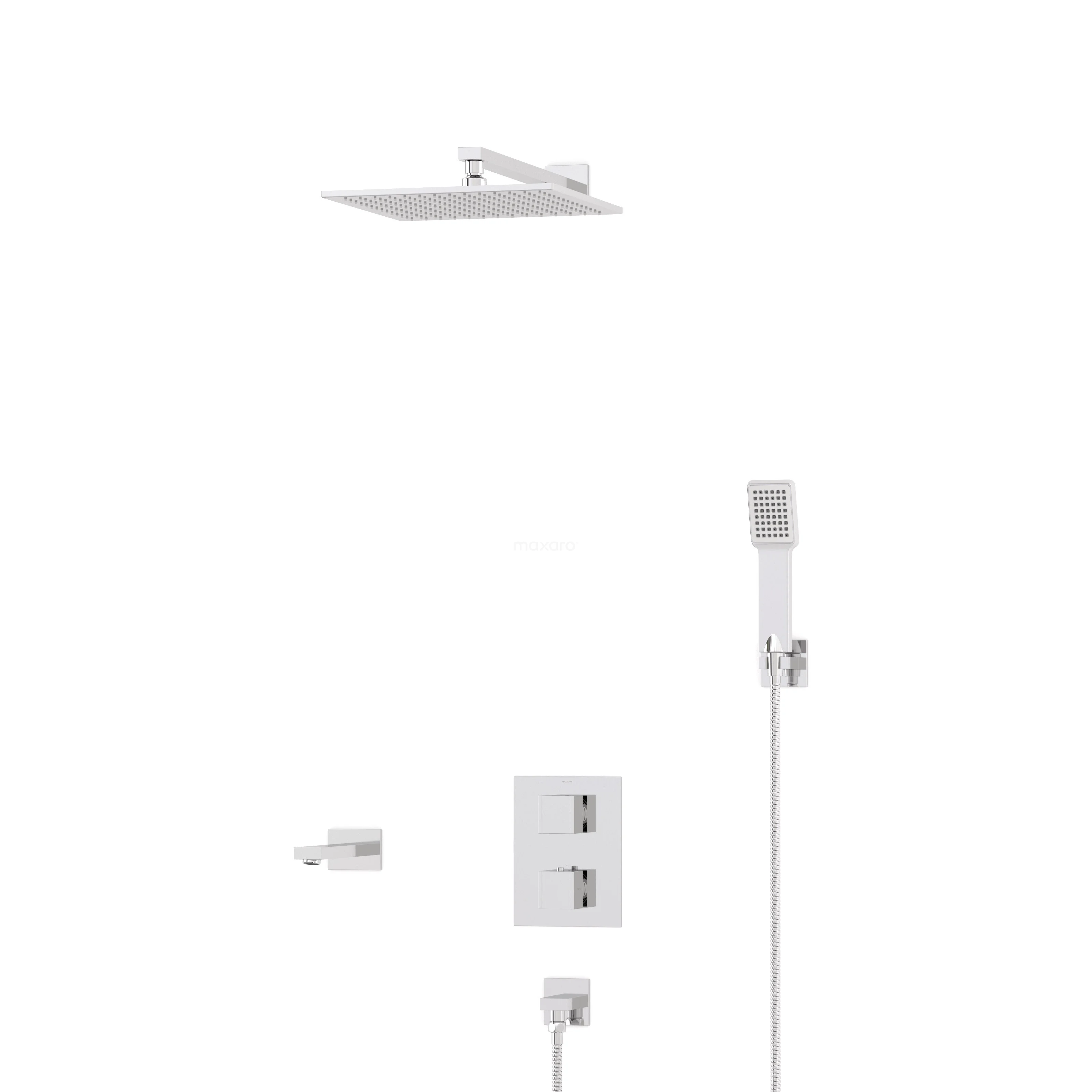 Cubic Built-in Bath Tap with Rain Shower | Chrome Thermostatic