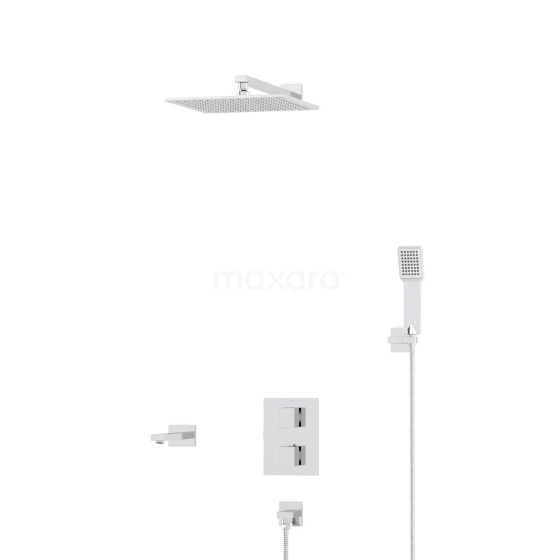 Cubic Built-in Bath Tap with Rain Shower | Chrome Thermostatic