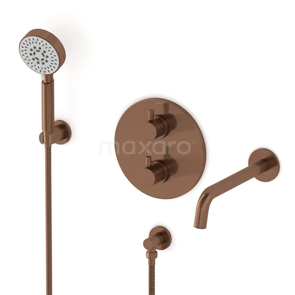 Radius Built-in bath mixer set | Copper Thermatic mixer with handheld shower 5 positions