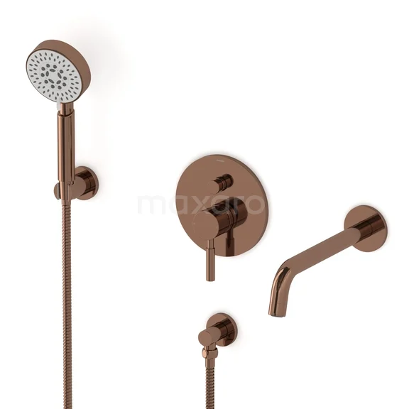 This built-in bath tap with mixer from the Radius series must not be missing in your bathroom. This model is equipped with a hand shower and shower hose. The thermostatic tap has a luxurious design and is finished in shiny copper. The timeless appearance of this tap fits perfectly in any bathroom style.