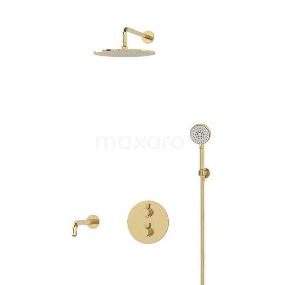 Radius Built-in Bath Tap with Rain Shower | Glossy Light Gold | Thermostatic
