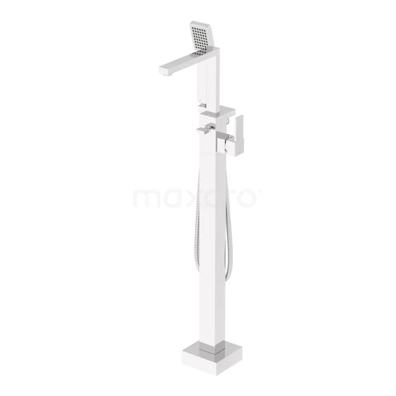 This freestanding bath tap from the Cubic series is an absolute must-have in your bathroom. This stylish piece is equipped with a hand shower, hand shower holder, and shower hose. The single lever mixer tap has a shiny, chrome finish and a square design. The chrome colour provides a timeless look and feel. Additionally, the straight lines create a sleek linear pattern. This makes the tap well-suited for a modern bathroom style.