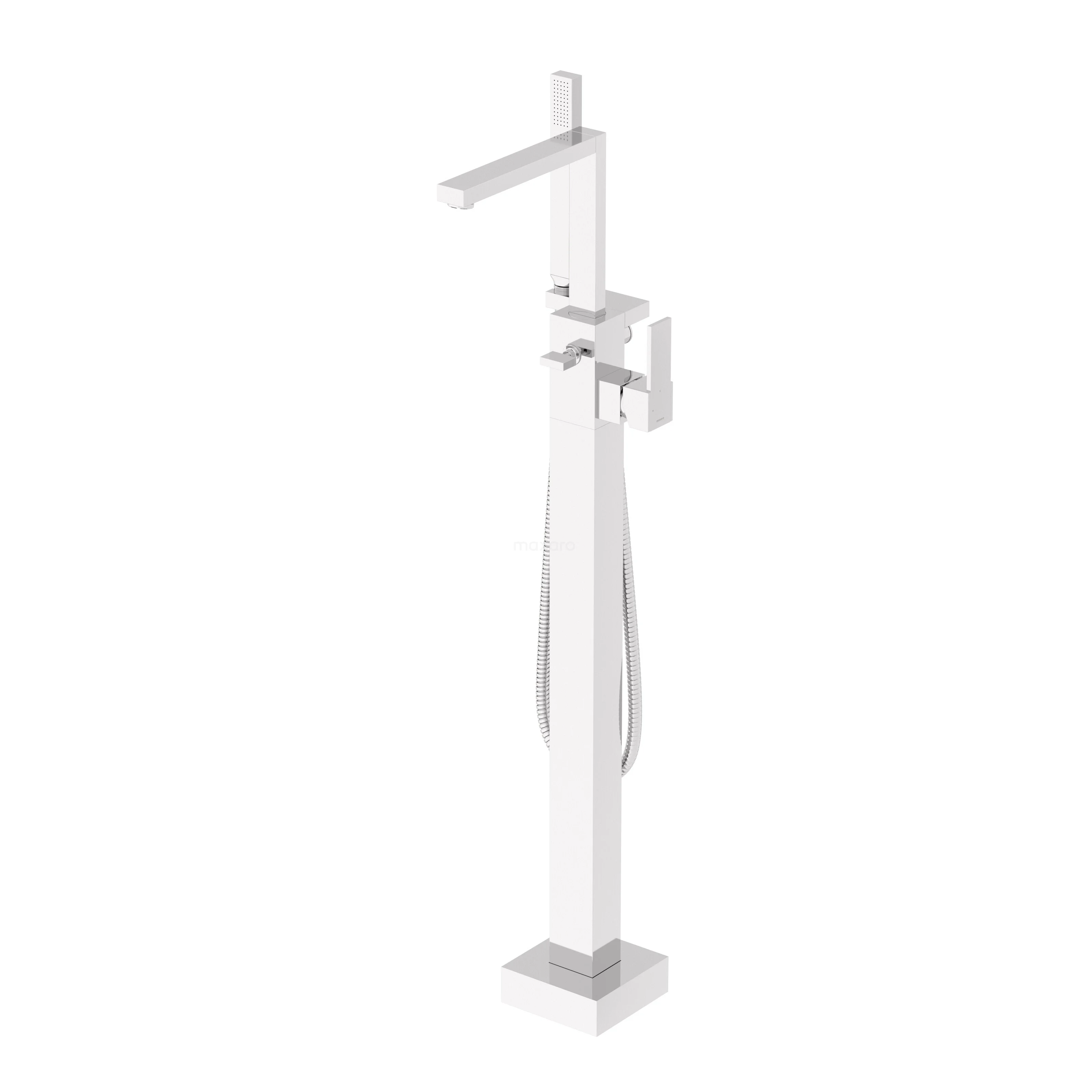 Cubic Freestanding bath taps | Chrome Single lever mixer tap with hand shower