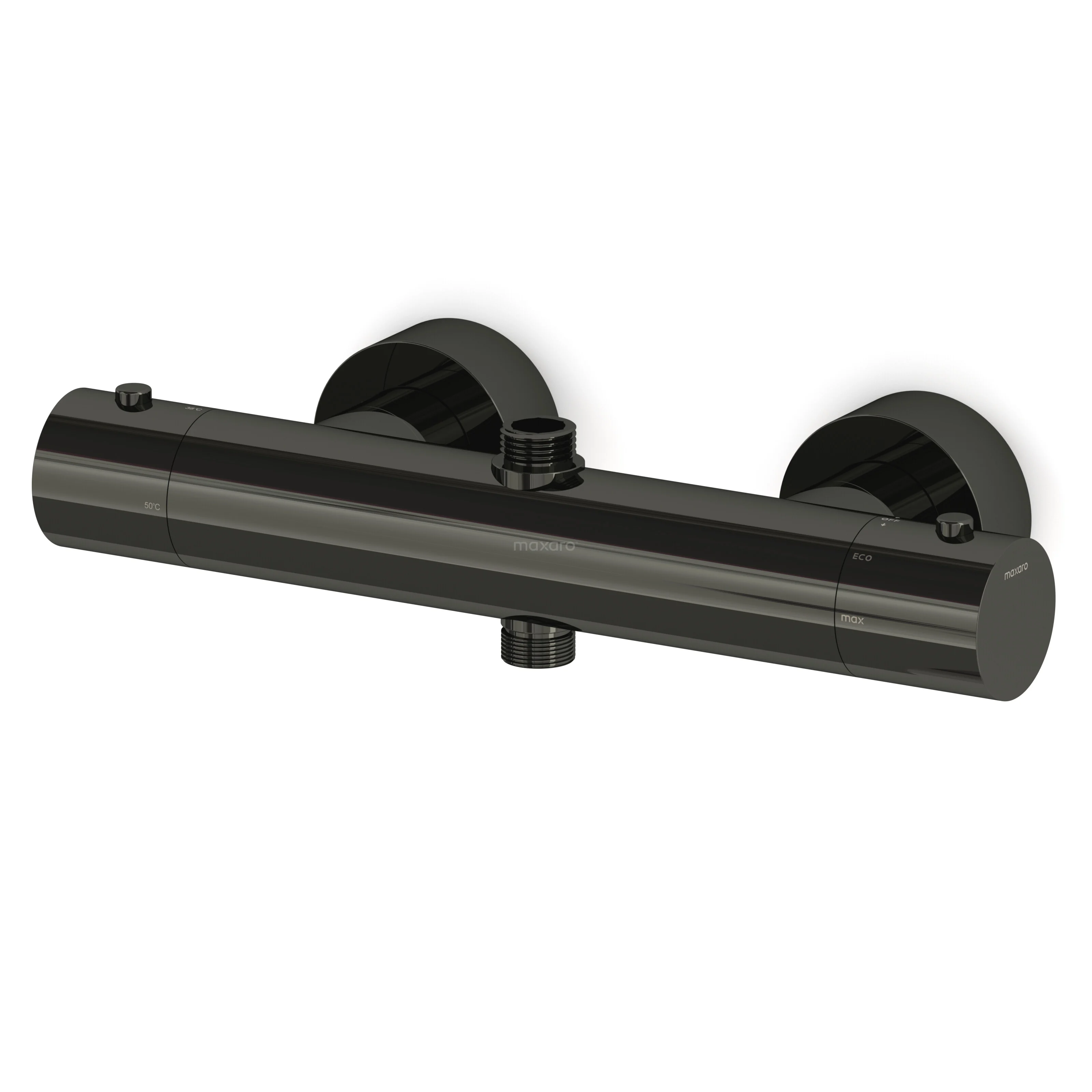 Deze stijlvolle opbouw douchekraan uit de Radius-serie mag niet ontbreken in uw badkamer. De thermostatische kraan is uitgevoerd in zwart chroom en heeft een strak, rond design. Hierdoor komt dit tijdloze exemplaar in iedere stijl tot zijn recht.
