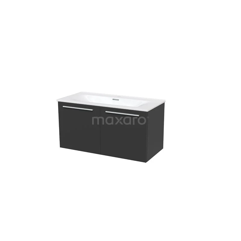 Box Bathroom furniture with sink | 100 cm Matte black melamine front 2 doors
