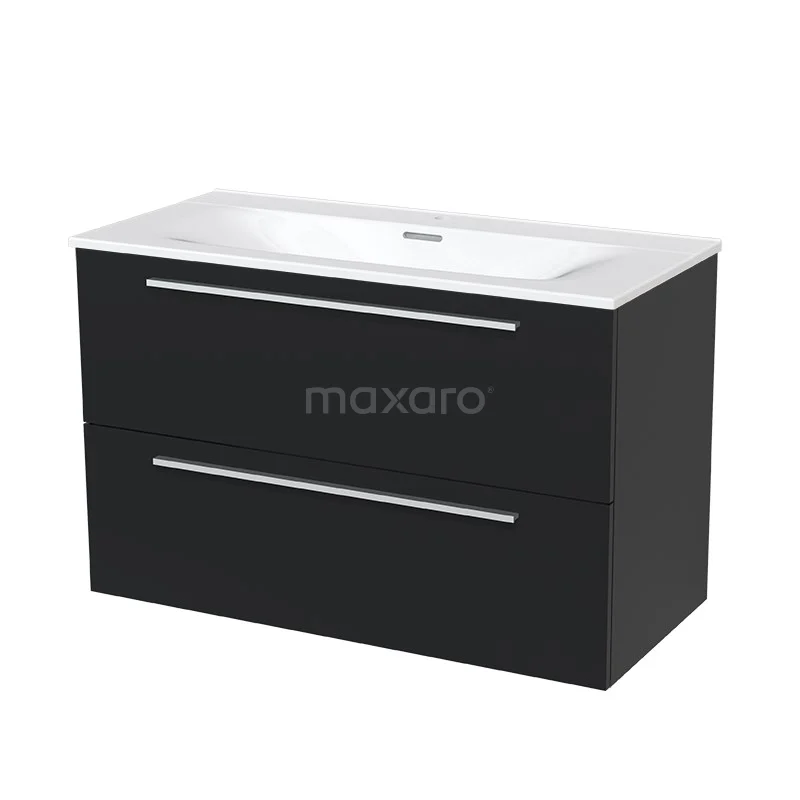 Modulo Bathroom furniture with sink | 100 cm Matte black Flat front 2 Stacked drawers