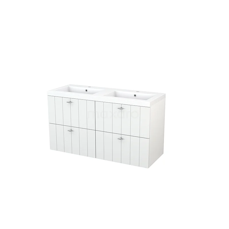 Modulo+ Bathroom furniture with sink | 120 cm High-gloss white Slat front Mineral marble 4 drawers