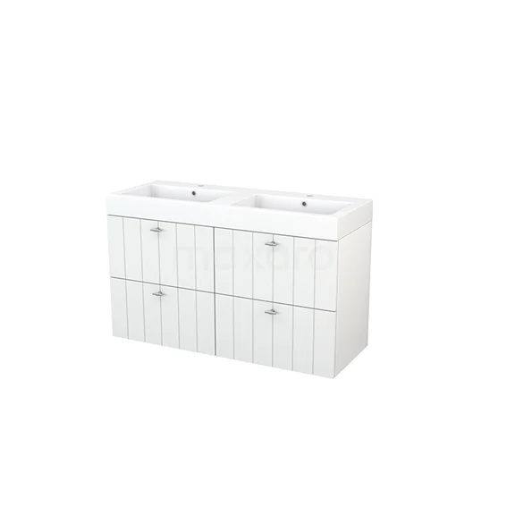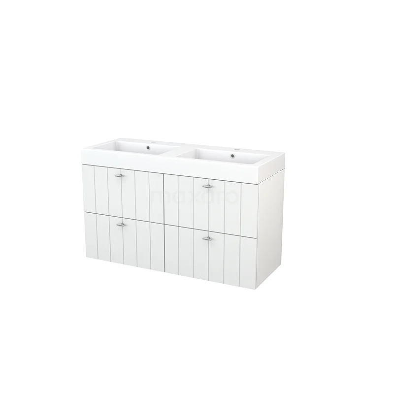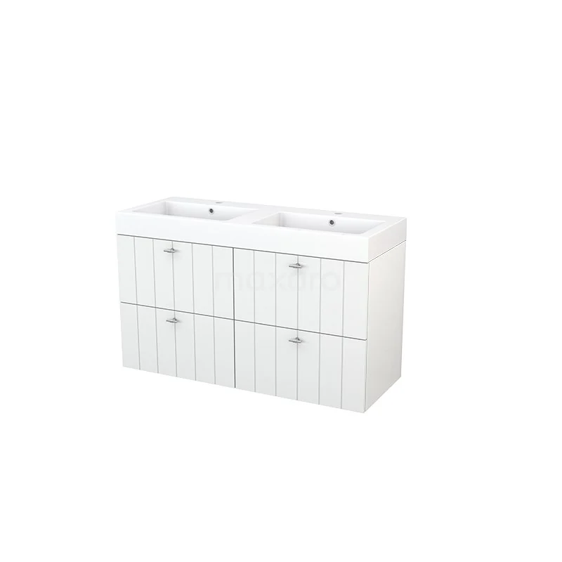 Modulo+ Bathroom furniture with sink | 120 cm High-gloss white Slat front Mineral marble 4 drawers