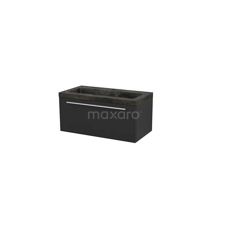 Modulo+ Bathroom furniture with sink | 90 cm Carbon Flat front Natural stone 1 drawer