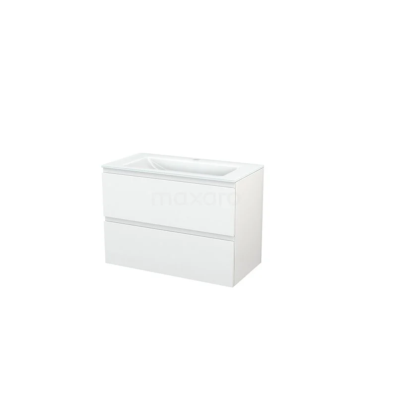 Modulo+ Bathroom furniture with sink | 90 cm High-gloss white Handle-less front Glass 2 Stacked drawers