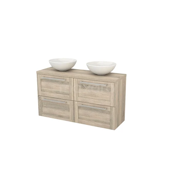 Modulo+ Plato Slim Vanity units for countertop basin | 120 cm Oak Frame front Oak worktop 4 drawers