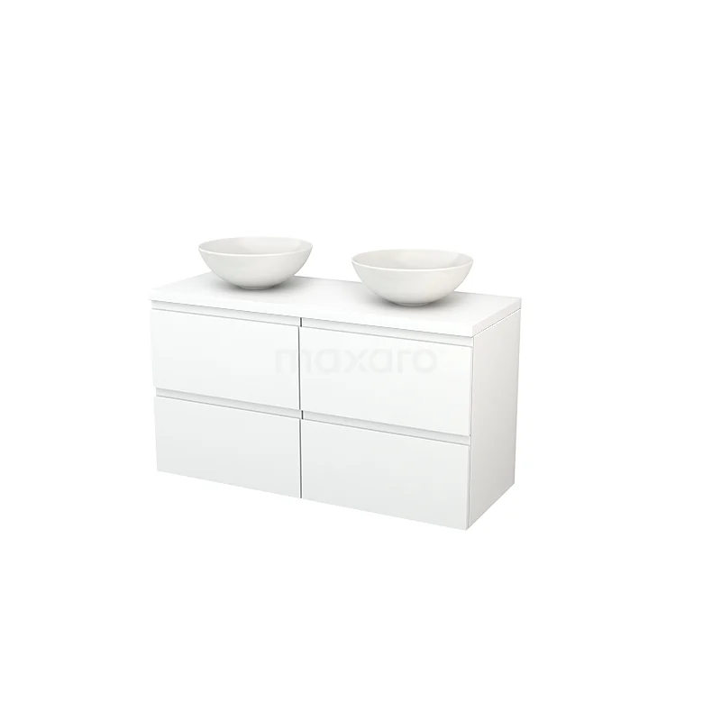 Modulo+ Plato Vanity units for countertop basin | 120 cm Matte white front Matte white worktop 4 drawers